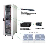 Комплекс бесперебойного питания 220В/6000 ВА, чистый синус, On-Line, диапазон входного напряжения 120-276 В, 19" шкаф, , место под 16/18/20шт АКБ 100Ач ( в комплект не входят). SNMP-модуль для мониторинга и управления ИБП по сети. Габариты (ШхГхВ) 600х800х1990 мм, дверца с закаленным стеклом, замок, возможность установки вентиляционных модулей.